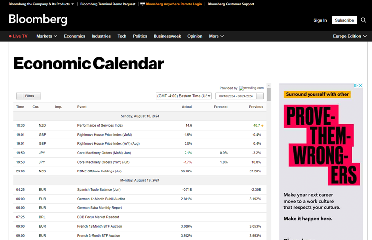 5. Bloomberg Economic Calendar
