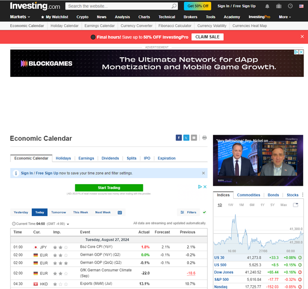 4. Investing.com Economic Calendar